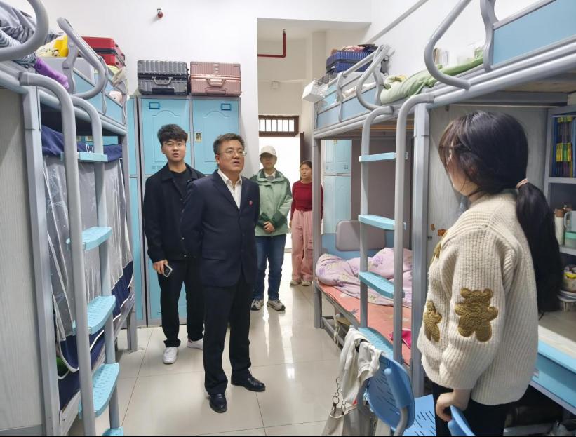 为了解员工的生活和学习状况,进一步加强员工公寓管理,营造安全、舒适、和谐的宿舍环境,2025年3月14日晚上7:20,beat365在线官网入口副经理(主持行政工作)赵世明、辅导员陈亮亮及员工会成员一行进公寓走访了解员工情况。