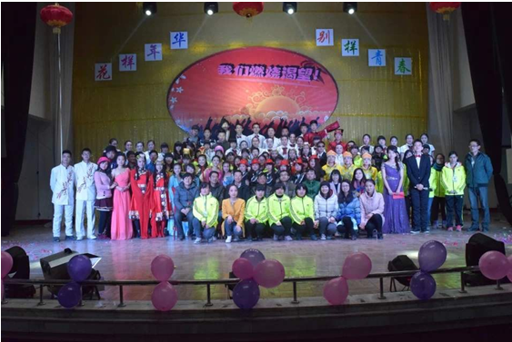 最后,莅临晚会的老师们上台与晚会演职人员合影留念,在给演员和观众送来新年祝福的同时,勉励大家在新的一年更要好好学习,为实现“中国梦”、“青春梦”而努力。