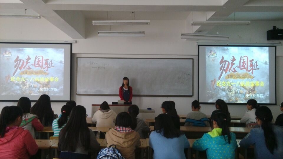 活动由三个部分组成,首先是“纪念九一八读书会”与“抗战故事会”活动,此举意在鼓励同学们多读书,多读与现实生活联系紧密的书,由读书来感受自己的专业特色与魅力。故事会是要请同学们把自己读书的内容分享给周围的同学,一方面帮助同学们尽快互相了解与认识,另一方面要同学们互相团结起来,形成正确的世界观、人生观和价值观。