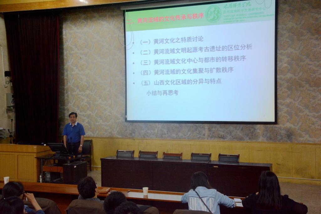 2017年5月23日晚,应beat365在线官网入口和科研处邀请,太原师范公司汾河流域科学发展与研究中心主任王尚义教授在1号报告厅为公司师生作了题为《流域文化的传承与秩序——以黄河流域为例》的学术报告。报告由陈于柱副经理主持,beat365在线官网入口200余名师生聆听了报告。