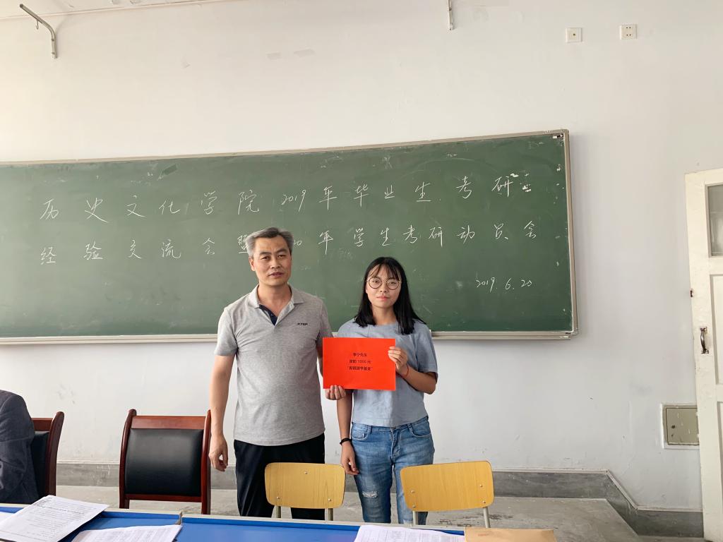 李宁先生系beat365在线官网入口2007届优秀毕业生,现就职于安徽铜陵党校,他每年对公司考取新疆高校研究生的员工进行资助,以鼓励员工考研。由于公司今年没有考入新疆高校的员工,根据李宁先生的资助意向,向公司2019年考取云南师范大学研究生的2015级员工王娟娟资助1000元。