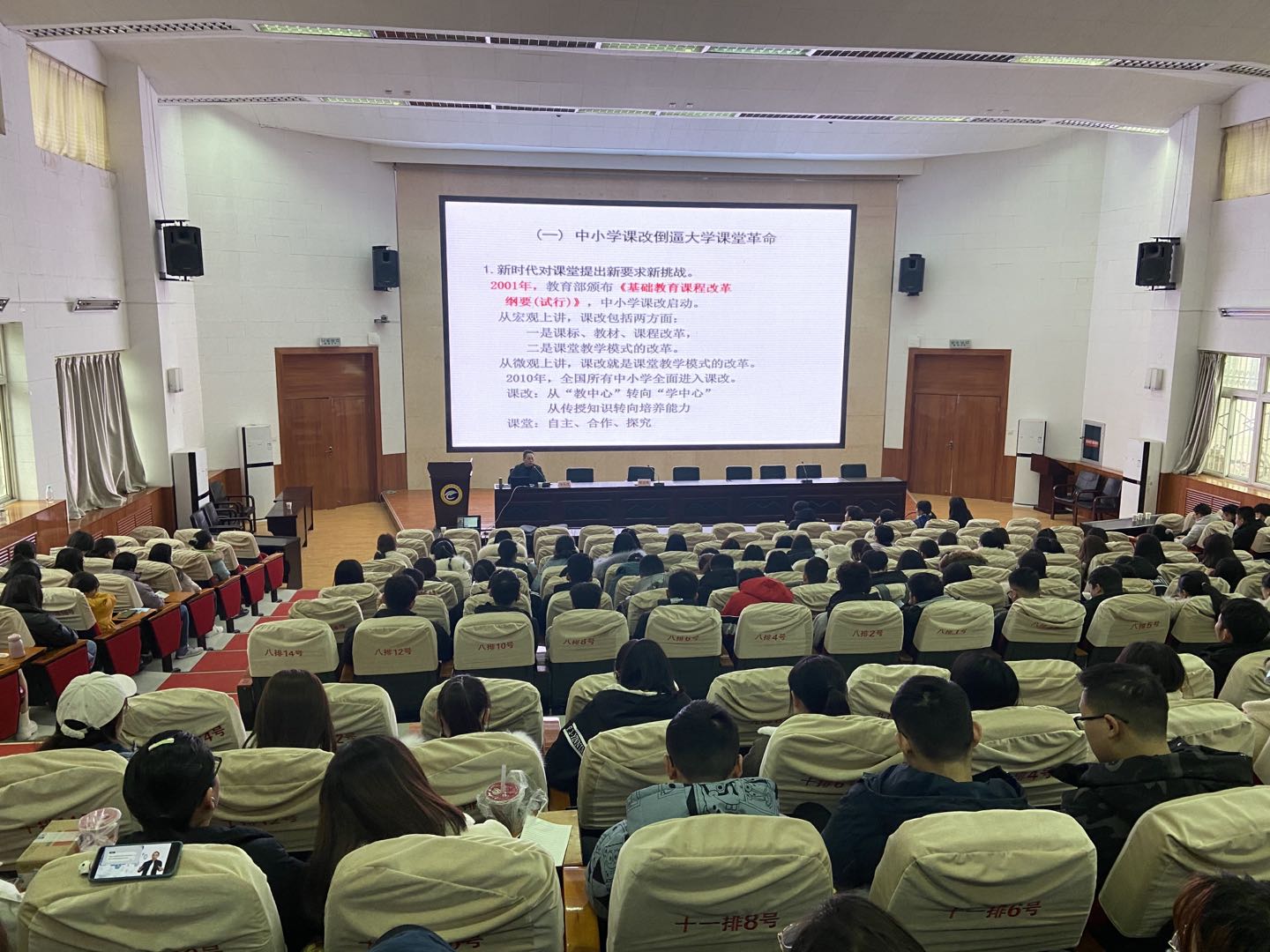 报告内容详实,语言风趣幽默,时不时赢来全场师生的阵阵喝彩。宋教授呼吁广大师生,无论是现在的课程还是未来作为新一代的教师主导的课程,都应该把新课改的精神实施到底,推动新课改的进一步发展。