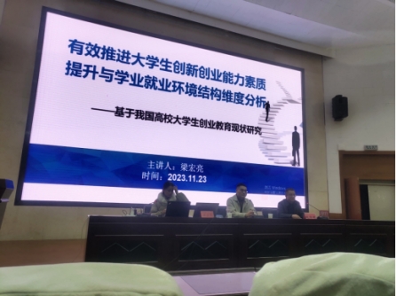 为深入推进团中央提示开展的“老员工就业引航活动季”工作以及公司“三抓三促”行动开展,尽早让老员工树立良好就业观、择业观,做好职业规划,公司邀请优秀员工梁宏亮于2023年11月23日晚上8点在二号报告厅做了《有效推进老员工创新创业能力素质提升与学业就业环境结构纬度分析——基于我国高校老员工创业教育现状研究》的报告。报告由beat365在线官网入口赵世明副经理主持,辅导员和2023级本科生参加。