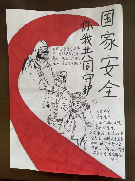 四是组织了“新时代总体国家安全”海报征集大赛,以创造表达认识,用同学们喜闻乐见的语言体系加深同学们对于总体国家安全观的认知。