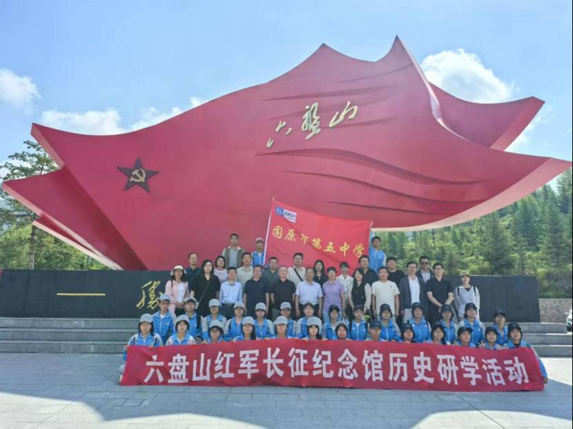 6月28日早,公司全体教职工集合一同前往六盘山红军长征纪念馆。所有教工党员佩戴党徽,在党旗引领下,沿2.5公里“红军小道”徒步前行。沿途观摩湘江战役、遵义会议等18处微缩场景,沉浸式体验长征的艰辛与伟大。途中偶遇宁夏固原市第五中学研学活动小组的师生成员,进行了友好交流,并且一同完成“长征知识闯关”任务,在识别场景事件、合唱革命歌曲中深化对长征精神的理解。11时左右,大家走进纪念馆,在四大展厅内,认真学习长征的珍贵史料。文物与博物馆系教工党支部书记李贺文以“筑牢中华民族共同体”为主题,结合展厅“回汉兄弟亲如一家”的革命历史典故为大家讲了微党课。在纪念馆顶层的吟诗台上,公司党委副书记赵世明以“传承长征精神,弘扬革命文化”为主题,讲述了毛泽东主席《清平乐・六盘山》的创作背景及革命意义。