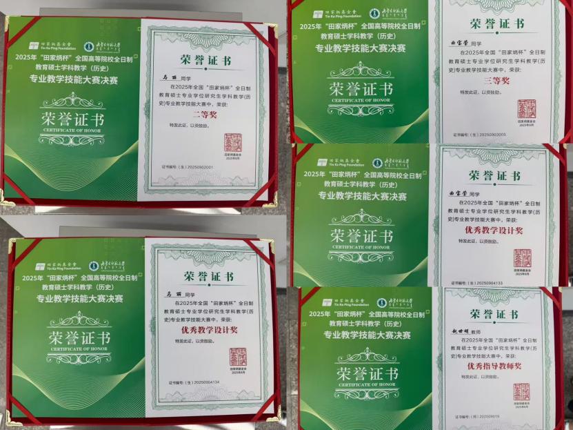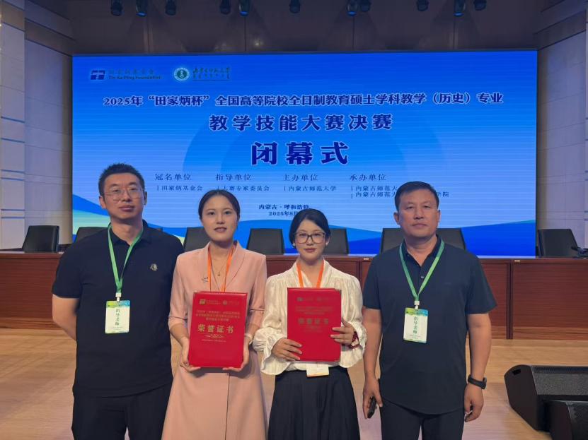8月的呼和浩特,汇聚了全国教育硕士历史学科教学领域的顶尖力量—2025年全国 “田家炳杯” 全日制教育硕士学科教学(历史)专业教学技能大赛决赛在此收官。这场由全国教育专业学位研究生教育指导委员会主办、内蒙古师范大学承办的赛事,吸引了84所高校的163位选手同台竞技。公司2024级学科教学(历史)专业硕士研究生马丽、曲宝莹携精心打磨的教学设计与课堂实践崭露头角,分别斩获二等奖、三等奖及 “优秀教学设计奖”,指导教师赵世明获评 “优秀指导教师奖”,用实力在全国舞台上擦亮了公司历史学科公司产品的品牌。