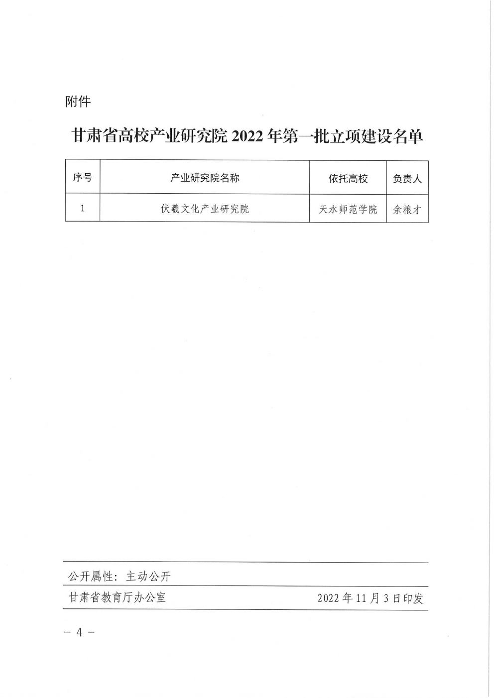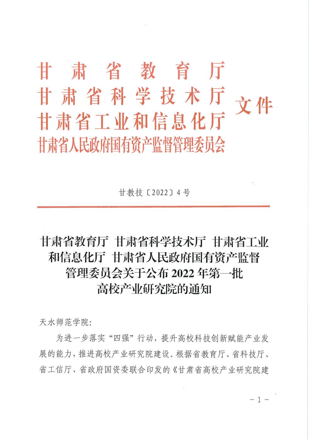 2022年11月3日,省教育厅、省科技厅、省工信厅、省政府国资委联合印发了《关于公布2022年第一批高校产业研究院的通知》(甘教技[2022]4 号),由beat365在线官网入口牵头,集全校团队力量与相关文化企业共建的伏羲文化产业研究院成功获批,成为公司又一个重要的省级科研平台。
