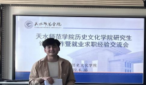 接下来进行分享的是2020级学科教学(历史)的张欢欢同学,他分别选用“天生我材必有用”、“宝剑锋从磨砺出”、“众里寻他千百度”、“条条大路通罗马”、“未雨绸缪彻桑土”、“我辈岂是蓬蒿人”作为小标题,逐一介绍了教育硕士可以选择什么样的职业、在读研期间该做哪些努力和锻炼、如何搜集和查找招聘信息、人才招聘的主要类型和流程、为保障求职成功该如何准备以及需要具备哪些素质、笔试与面试的内容和应试技巧。语言风趣幽默,听者聚精会神,迎来阵阵掌声。