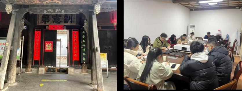 3月4日,师生首站抵达天水民俗博物馆(南宅子),在讲解员引导下参观胡氏古宅及民俗文物展,从生活器具、传统服饰到婚嫁礼俗展品中还原天水居民生活场景。交流环节中,崔文刚老师针对博物馆展陈逻辑、观众互动等问题展开专业解答,员工通过访谈馆内工作人员,深化对博物馆日常工作的认知。一名员工感慨:“在文物细节中触摸到文化温度,更明晰了传播者的责任。”